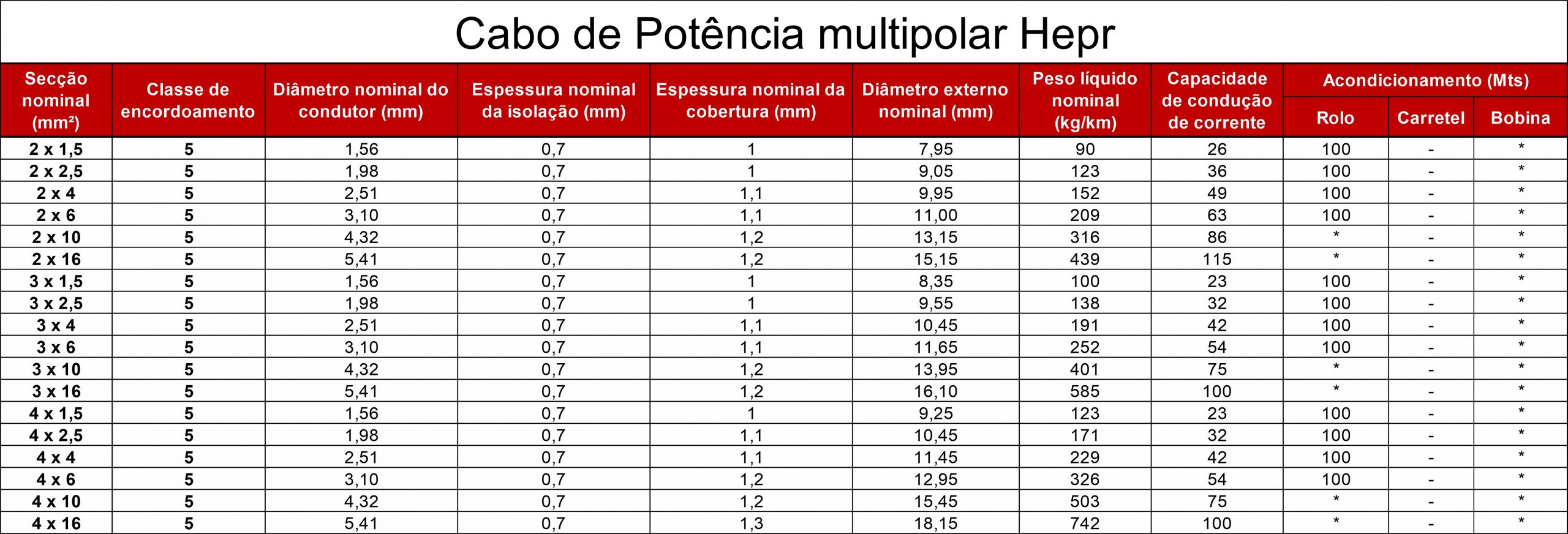 Isolação composto termofixo extrudado à base de HEPR (EPR/B-90°C).